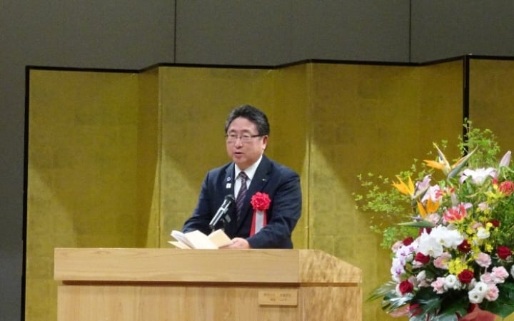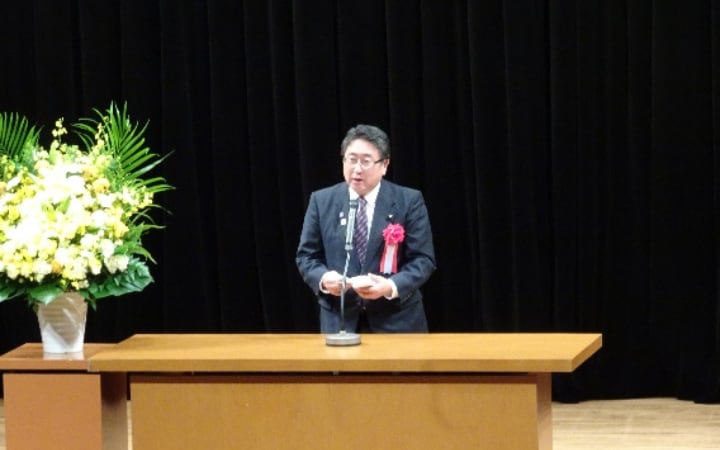 〔写真1枚目〕来賓挨拶を述べる増子議長